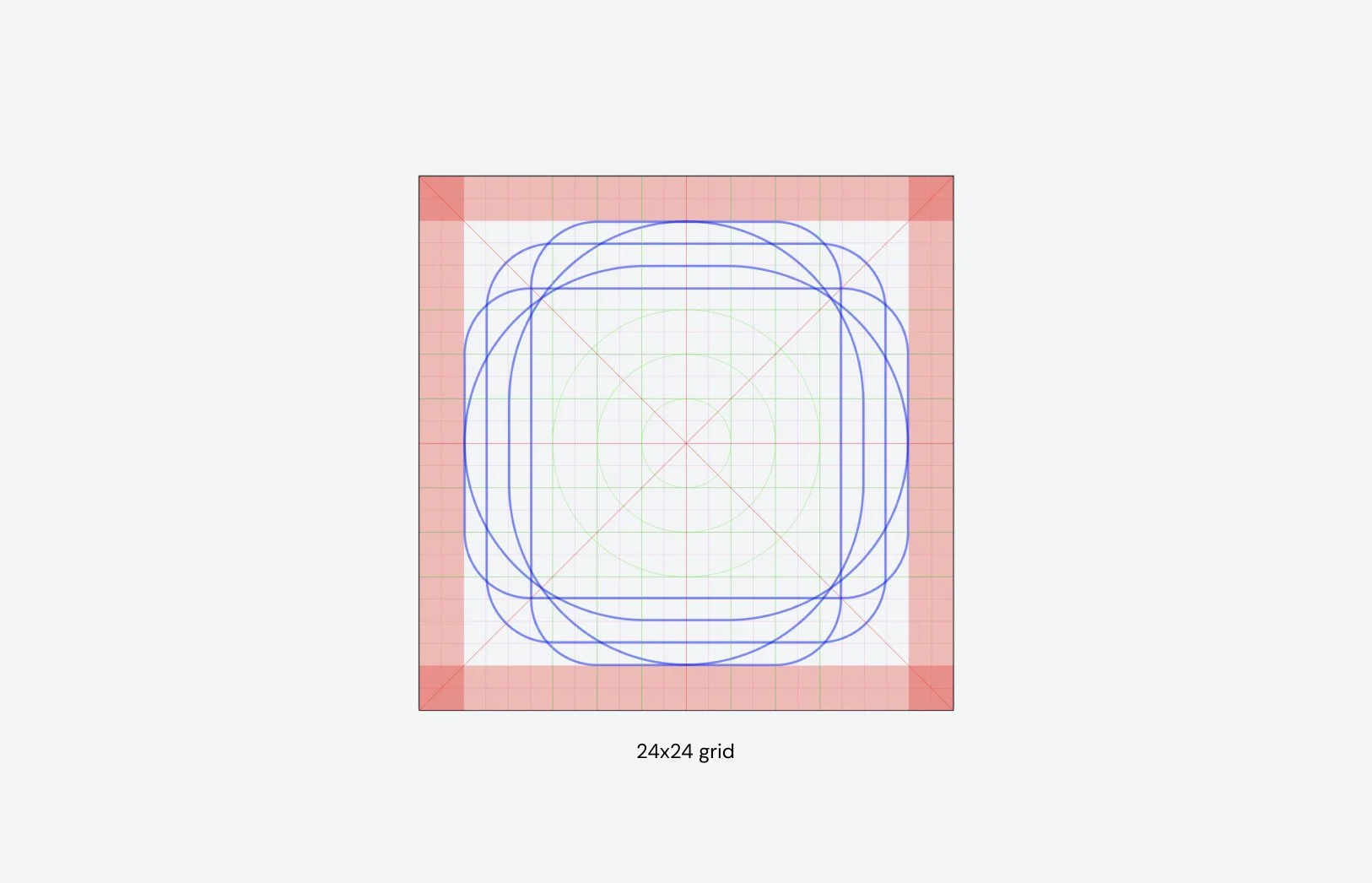 The iconography key shapes leverages quadrilateral forms with a corner radius that is just under creating a perfect circle. The extended style compliments the typography rules.
