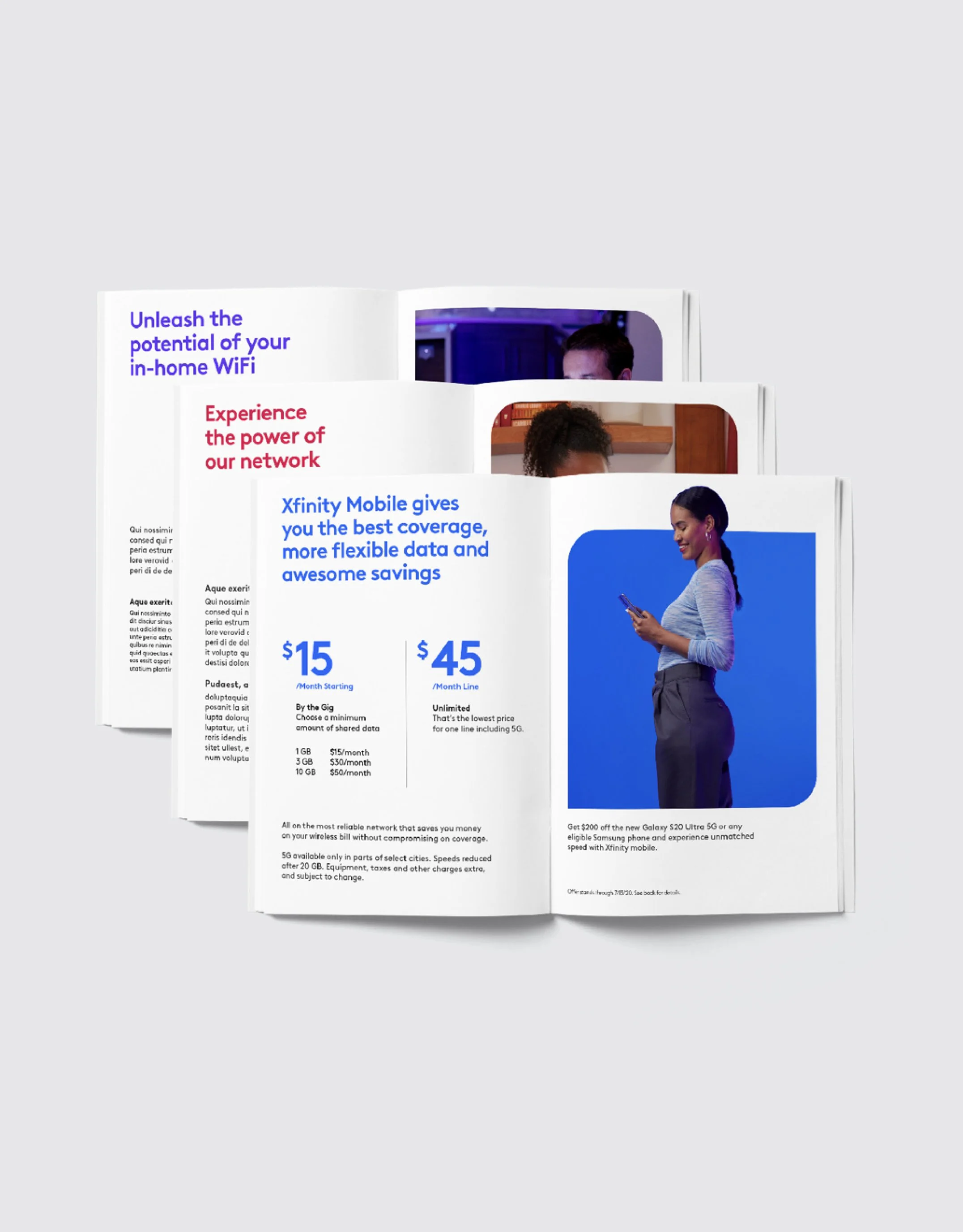 The Xfinity brand had always been marketing focused. To fill gaps, our product teams often had to make best guess solutions to fulfill unmet needs in our digital and product experiences. To help close the gap and ensure our product needs were more considered, I began working closely with our brand identity team providing creative and art direction. In collaboration with our brand identity team and brand agency, I had the opportunity to heavily influence the rebrand of Xfinity and push to ensure that the brand was flexible and digital first.