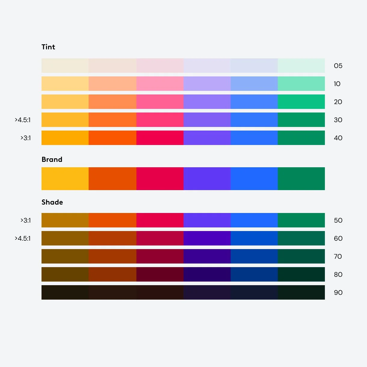 To help make decisions easier in our digital experiences and scalable, I also broke the brand palette into color spectrums. This helps informs how we use color for hierarchy, typography, and light / dark modes.