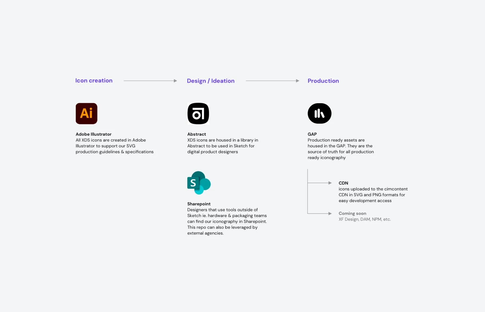 Once icons were created I wanted to ensure that we could standardize production and centralize the assets for teams to consume.